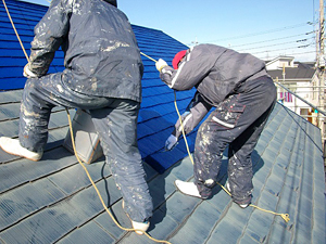 築20年になる 「N様邸」 の屋根・外壁の塗装です。 屋根はカラーベスト、外壁はアルミサイディングです。外部は20年間、何もせず耐えました。 アルミの電着塗装の威力は大きいですね。
