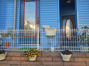 輸入ガラスドアの再塗装のほか、塩ビの雨樋をアルミ製に交換