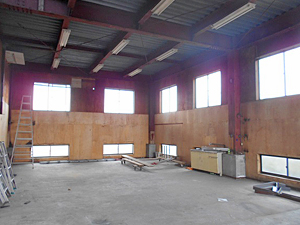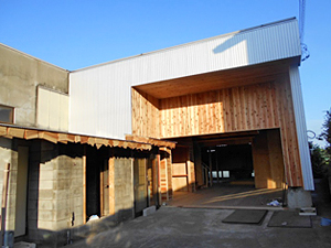 地盤沈下による建物の傾き、雨漏れなどの補修を行いながら、空き家になった倉庫を魅力溢れる工房に再生しました。