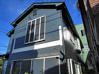 1990年竣工、2011年外部、内部のリノベーション、そして今回はバルコニーの交換です。 この建物は長屋住宅で、2階を賃貸として貸しています。 2階部分において窓が開いたまま、降雨による雨の侵入が繰り返されました。被害拡大の打開策として、建物一体型のバルコニーをアルミ既製品に交換することとしました。