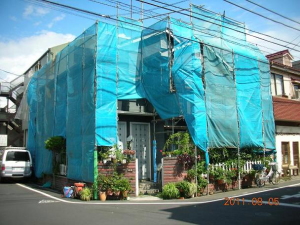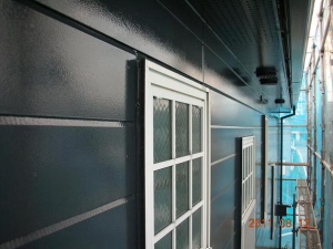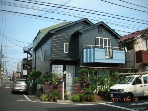 竣工後21年目のリノベーションです。 キッチン、洗面化粧台、ユニットバスなどの設備機器の劣化がほとんどありませんので、今回は既存のままで交換などは行ないません。特にユニットバスのパネルの継ぎ目、床の立ち上がりのコーキング、水栓廻りなど新築時とさほど変わりません。オーナー様が換気扇を付けっぱなしにしていることが良い効果をもたらしたようです。 (入浴時もそうでないときも) 今回のリノベーションは、屋根、外壁の塗装、バルコニーの防水、防蟻工事、内装の一部模様替え、防犯スポットライトの新設などが主な工事内容です。 玄関ドアは今回取り替えます。ドアが2つ見えるのは、上下分離の長屋になっているからです。 1階をオーナー様の住居、2階を賃貸として家賃収入を得ています。