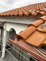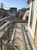 バルコニーは全面ウレタン防水のやり直し。屋根部分は屋根材一部撤去のほか、ケラバ瓦、棟瓦の交換、漆喰塗り直しなどです。それに構造材取替補修と補強、解体部分の大工補修工事が加わり、約3週間の工事となりました。