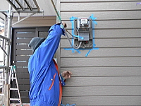 外部の電気工事、外壁はガルバリュームラップサイディング 玄関ドアは引き戸タイプに変更