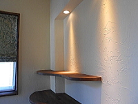 玄関のニッチェカウンター 左官職人の手垢の残る仕上げを、LEDランプが照らす