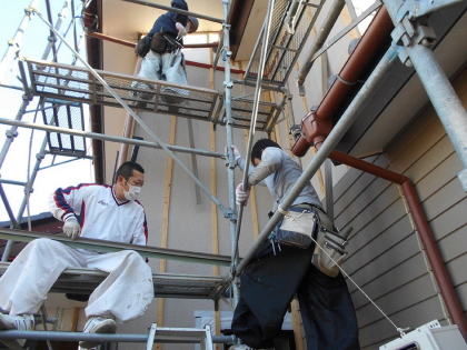 築30年の木造軸組2階建て住宅を、全面的にリノベーションしました。 1階間取りの変更、外壁の張増し、アルミ雨樋へ交換、雨漏れ補修、防蟻工事、玄関ドア交換、断熱サッシに交換、制震金物、構造補強、床組の補強、床暖房の設置、浴室・洗面・トイレの交換、造作キッチン、造作キッチンキャビネット、収納、シューズインクローク、珪藻土、床下備長炭、給排水管取替、ボイラー・井戸ポンプの交換・・・・・・・・・・・などです。