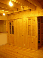 住宅性能保証登録住宅 208外断熱工法 外壁ガルスパン 全室床無垢パインフローリング ネオマフォーム断熱材 壁一部珪藻土(エコクイーン) オール電化 208造作本棚 現場製作キッチンバックキャビネット 塗料オスモカラー パインドア LDパイン無垢板張り ウリンウッドデッキ |