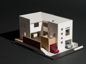 ★ 3方向角地に建つ2階リビングの家 ★ 2階LDKはオープンスタイルとし、シンクをダイニン ★ シンプルな片流れ屋根に、舞台空間のごとく周囲を ★ ビルトインガレージ、ロフト、塗り壁、無垢の床 ★ 延床面積 43.58坪 |