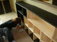 内部の木部(巾木、階段、手すり、建具、棚板など)を全てオスモカラーで塗装します。