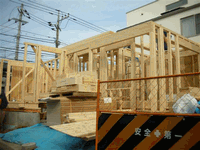 第4番目は、第一種高度の北側斜線をクリアーするために、桁行き方向の間柱を外壁面から455ミリのところで、屋根なりに下げています。これをスタッドダウンといいます。