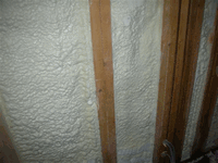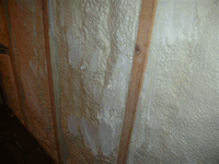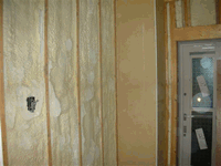 現場発泡断熱材の施工。断熱材は、最近では、カネライトフォームを使用した外断熱や、セルロースファイバーあるいは、現場発泡型断熱材を使用した内断熱の採用が多くなってきています。