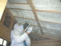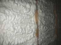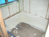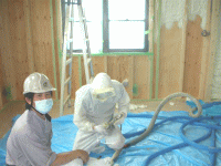 北米最大級のウレタンメーカーであるデミレック社の断熱材シーレクション500の施工状況。 世界ではじめて100%水により専用の樹脂を120倍に発砲させる技術により高気密・高断熱を実現する。無数の小さな気泡(セル)で構成され、それらは99%動かない空気層であるため、断熱性能に加えて、高い吸音性も期待できる。 騒音減少率(NRC)は75%程度といわれている。 施工はデミレックジャパンの責任施工である。 2006.7.7 |