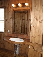 キッチンのバックヤードに2階の水周りの全てをミセスの動線に沿って配置した、効率重視の平面計画も特徴のひとつです。廊下のような部分もないため、2階の面積配分を各部分に有効に振り分けることができました。パウダールームが3帖以上の広さにできたのも、廊下を造らなったことによります。ここでは一転して「白」の世界から、南仏の古民家の天然木の世界に変わります。床、壁、カウンター、窓枠そして建具など無垢の木の部分は全てオスモカラーのウッドワックスで塗装しています。鄙びた雰囲気がでています。色むらがなんともいえず気持ちを和やかにしてくれます。パウダールームには手作り洗面ウェーブカウンターを中心に、タオル収納、ドラム式洗濯機、クロークが配置され、一番奥が風呂の入り口になります。さあ、一日の疲れをここで癒してくださいませ。