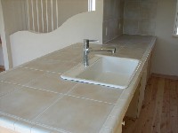 さて、いよいよキッチンです。世界でただひとつの手作り製作キッチンに立つとダイニング、リヴィングが全貌されます。子供を見ながらキッチンに立てるため母親は安心です。ダイニングのコーナーにはウェーブデザインのパソコンカウンターもあわせて製作しましたので、レシピもそこから引出せます。献立作りが楽しみです。キッチンのIHコンロはビルトイン式でなく、カウンターの上に自由に置けるものを3つ採用しています。冬の鍋料理の時にはそのうちの一つをダイニングテーブルに持っていくことができます。一つだけシンクに近づけることもできます。ミセスの使い勝手に合わせて置く場所を決めてください。移動の理論です。したがってキッチンのタイルの目地が壁まで一直線に続いて見えるわけです。汚れ物はとてもそこには置いておけません。整然とした感じです。混沌とした文科系というより理科系的です。授業をサボれる文科系でなくそこではさぼれません。チョッとつらいです。でも理科系の僕は平気でサボっていましたが・・・・。代返を頼んだやつが返事をしないで落としたドイツ語が記憶に蘇えります。代返といえども男の約束ですから守らなければなりません。キッチンの奥行きは1.1メートルありますので、そこはモーニングカウンターを兼ねています。忙しい朝は、さっと作って、さっと出し、すぐそこで洗えるよう親切設計になっています。なおスレンダーで長身の奥様に合わせて、キッチンの高さは875ミリメートルに設定しています。90センチだとちょっと高すぎる、既成のキッチンの85センチだとやや低いといった問題を解決しています。それからシンクの下は幅1.1メートルのオープンな空間としていますので、そこは分別ゴミの置き場となります。においが気になるときは、すぐ横のロンプルーフシート防水で保護された広さ11帖大のバルコニーに収集日まで置いておいてください。ここで使われた珪藻土はにおいもある程度吸収するため気にならないと思いますが。キッチンと同じく4つの引き出しがついた手作りバックキャビネット、冷蔵庫の横のパントリーと合わせて充分な収納計画も実施設計のときに詳細を詰めていきます。引き出しの幅や高さ、扉を付ける、付けない、付けるとしたら引戸か開きか、中の棚の奥行きの寸法、棚を固定式にするか可動式にするか、そこでの動作そして機能性を考えながら決定していきます。効率的で変化に対応できるような収納計画をすることによって、理科系的なキッチンが成立したわけです。