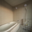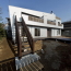 軟弱地盤で、敷地に杭打ちのための重機が入れない場所での地盤補強工法です。 「ジオクロス工法」 です。 道路は敷地の遥か下です。そこで小型重機や建材などを上げるための仮設のケーブルを作りました。そのケーブルを使い、ジオクロス工法施工のためのバックホウや振動ローラーなどの小型重機を上げました。(大型重機の搬入は不可能でした)