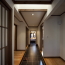 「和」の感覚を楽しむと言う意味での「和楽」の家です。「和風」となると、庭との関係性の中からデザインを抽出していかなければならないし、そもそも広大な敷地の中での計画ではなかったため、「和楽」のターゲットを全て内部の空間と、ディティールに向けることに専念しました。本来、和風となるとその外観も重要なのですが、この際ばっさりとそこは切り落としました。庭はあきらめたわけです。瓦屋根、縁側も同じです。したがって内部の構成に集中したデザインの展開が図られました。 |