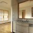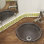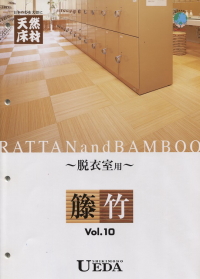 水回りの床に採用した天然床材の籐 (上田敷物工場) です。 表面材が籐100%で、40センチ角のタイル状の大きさになっています。 バック材には天然ゴムが貼られ、接着剤無しの置き敷きで施工できます。