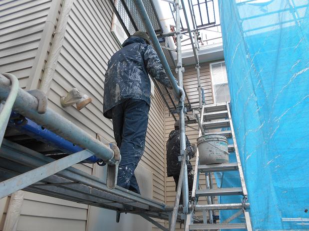 「イーストコースト・コレクション」(我孫子市) の現場は、遮熱塗料 「ガイナ」 での外壁施工が始まりました。