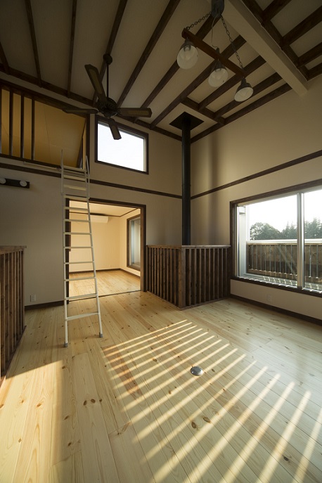 ご覧の2階の大空間は、吹抜けを通して1階のストーブ本体からと煙突からの放熱で、厳寒のしばれる冬から快適で暖かい冬に変換させます。