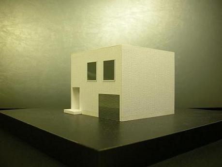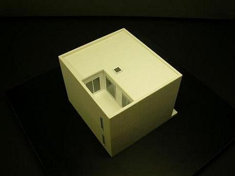 現在基本設計中の「UDA」計画の模型です。三方向を隣家に囲まれた敷地で、かなり建物が迫ってきています。そこで光の取り入れ方として、周囲から覗かれないバルコニーを2階に設置し、バルコニーに面した部分から光を取り入れる方法にしました。