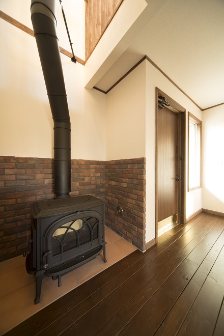 「セブンステップス・トゥ・ヘブン」 (我孫子市) 玄関ホールの薪ストーブ