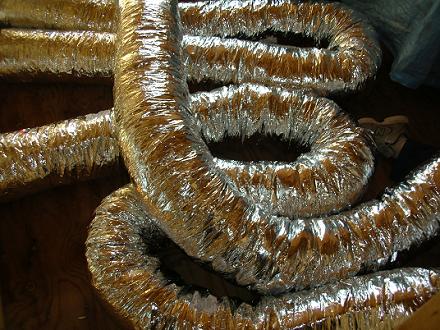 アーティステックな世界のように見えますが、もちろん蛇ではなく施工中のフレキシブル・エアーダクトです。