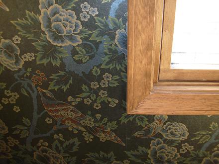 イギリスのデザイナー 「アンナ・フレンチ」 の手によるこのクロスは、触った感触も版画のようで、ほのかに光っている部分はとても上品です。日本のクロスでは、とてもとても、このようなデザインのものはありませんね。