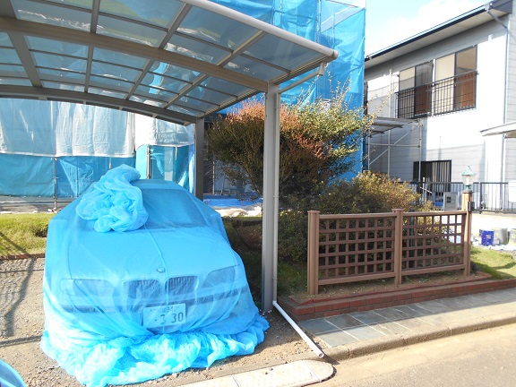 近隣の方の車の養生はもちろんのこと、愛車にもきちんと養生します。