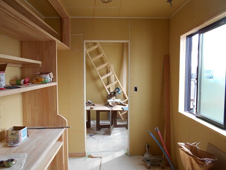 近日中に、造作家具の塗装の色や仕上げ具合が決められます。