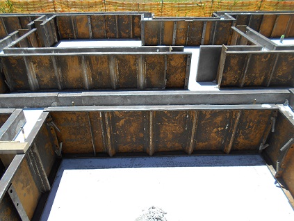 基礎コンクリート、養生中。 しっかりと養生しています。