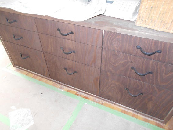 表面素材がラーチ合板で躍動感があります。オスモカラーの一度塗りをしたところです。