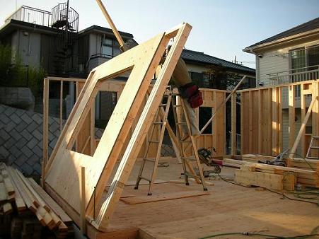 ジャッキを使って徐々に立ち上げていきます。うーん、これなら一人でできそうです。