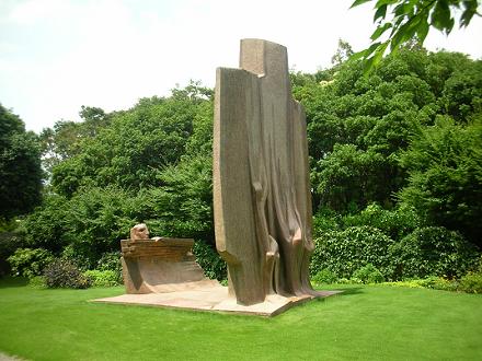 「層になった木を眺める人物」 と題する御影石で出来たこの彫刻は、ジュリアーノ・ヴァンジの1993年の作品。