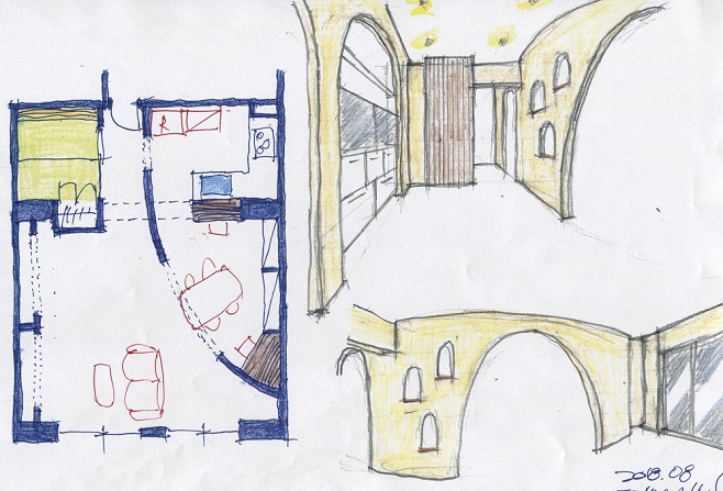 こちらのスケッチは水回りの位置を変えない、ローコストだけれど、全くマンションらしくないデザインです。