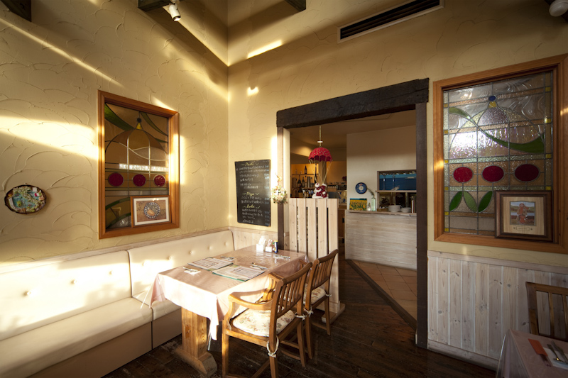 こちらは1999年に完成しましたイタリアンレストラン 「ダ・フィオーレ」 のステンドグラスです。 ルネサンスの偉大な建築家、ブルネレスキの手によるフィレンツエのサンタマリア・デル・フィオーレ教会がモチーフになっています。
