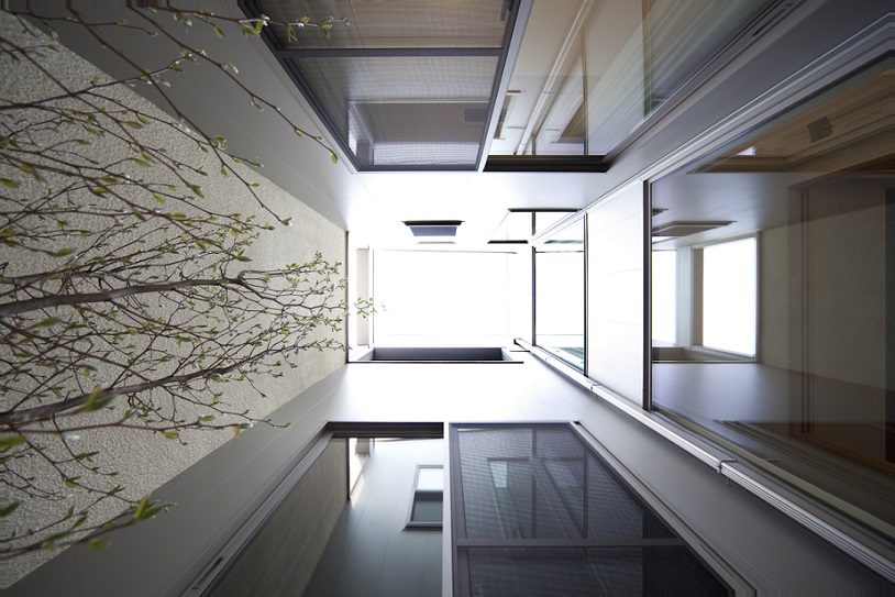 「蔵とヴァイオリン室のある家」 (我孫子市) の、センターコートから上を見上げたところです。