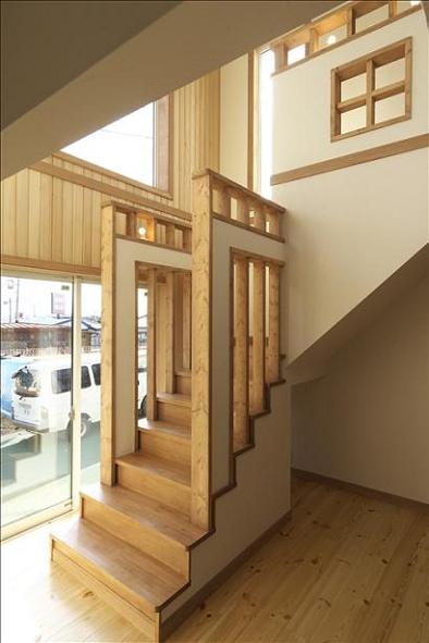この階段は家の中心にドーンと居座っています。玄関横にひっそりと、そして己自身の存在を隠してしまうような場所にはありません。 階段は誰からも見られその存在を隠すことはできず、またそこにあることによって家族を見守ります。