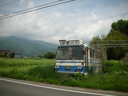 木曽奈良井宿から伊那 ICへ向かう道路沿いに、捨てられているといったらいいのでしょうか、このバスが眼に留まり、思わず車をとめて見てしまいました。