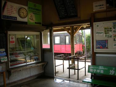 銚子電鉄の終着駅、外川駅も 「レトロな光景 VОL.7」 でご紹介しました綿内駅と同様、妻面の庇がホームの方まで回りこんでいます。