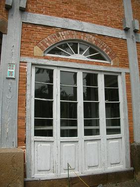 ガラスと鉄のサッシ、建具の蝶番はヨーロッパから輸入されたようですが、外壁に使われているこのレンガは、日本の瓦職人が瓦とともに焼き上げた、とされています。