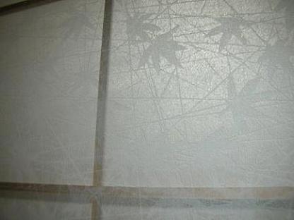 和紙を両側から塩化ビニール樹脂で挟みこんだ「ワーロンシート」です。 破れにくいので、小さなお子様のいらっしゃる計画ではよく採用しています。 商品名は、NO.82(もみじ)。「(株)ワーロン」 アーキヴィジョンオフィスは4月で築23年目に入りますが、今週この「もみじ」で張り替える予定です。