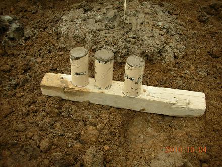 現場で取り出した3つの供試体です。これを土質試験専門の会社に持ち込み測定します。
