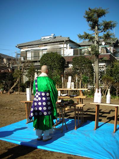 ここのところ天気が続き、今日も澄み渡る青空の下「KBS」計画の地鎮祭が滞りなく終わりました。