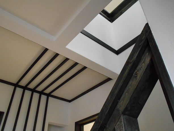 現場の方は珪藻土塗り壁工事が無事終わり、木部塗装との対比が一層鮮明になってきました。