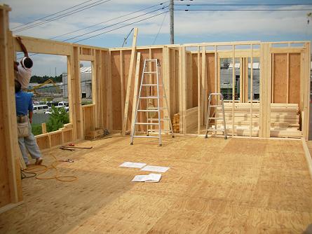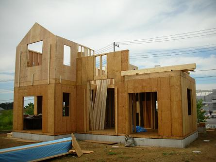 徐々に立ち上がってきました。建方工事は2階から小屋組みへと進むにしたがって、少しずつ難しくなってきます。 今日は「TT」計画で、大工さんとの定例打合せでした。 屋根の葺き下ろしが3箇所あります(これからの工事です)