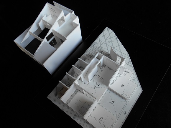 屋根、壁と順次分解できるようになっているので、内部の構成がとても分かり易いです。 吹抜け、勾配天井、センターコートなどの関連も把握できます。