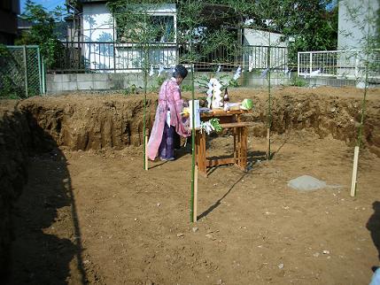 「YMO」計画の地鎮祭、滞りなく終わりました。後は地盤調査の結果を待って、基礎補強の方向性を決めます。