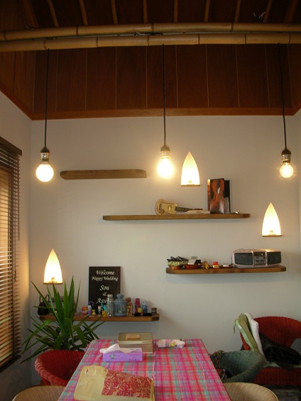 壁全面珪藻土コテ仕上げで、ランプ部分は壁を一部くり抜いています。