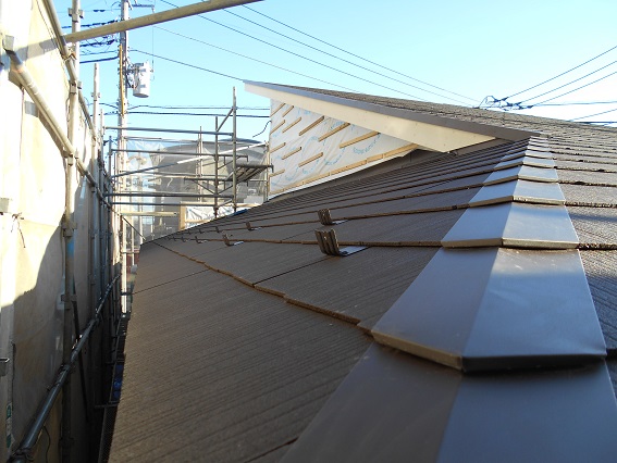 さし棟のガルバリューム板金工事が、丁寧に仕上げられていました。