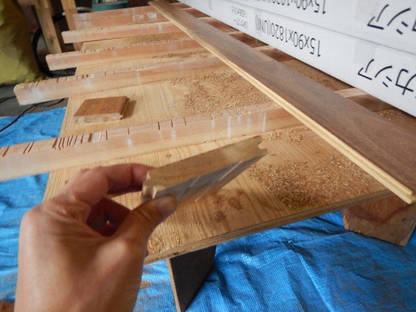 2階床は、床テック(ALC版)37ミリの上に遮音マット9ミリ、その上にアカシアフローリングの施工です。