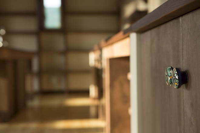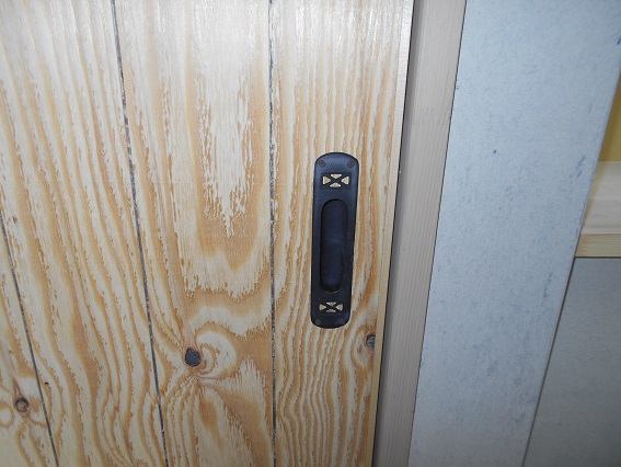 同じくキッチン横収納の両開き戸の引手は、オーナー様が調達されました。